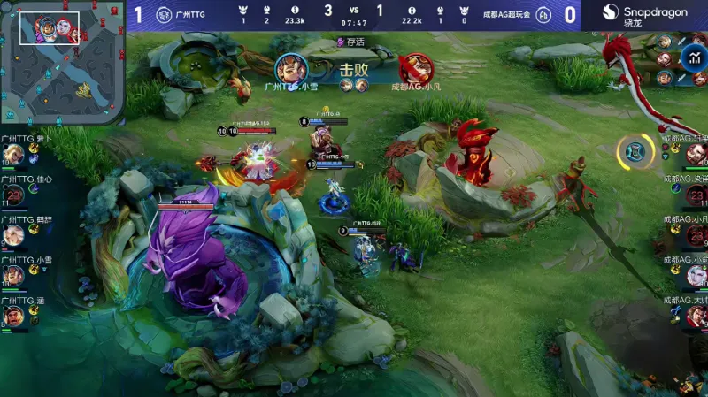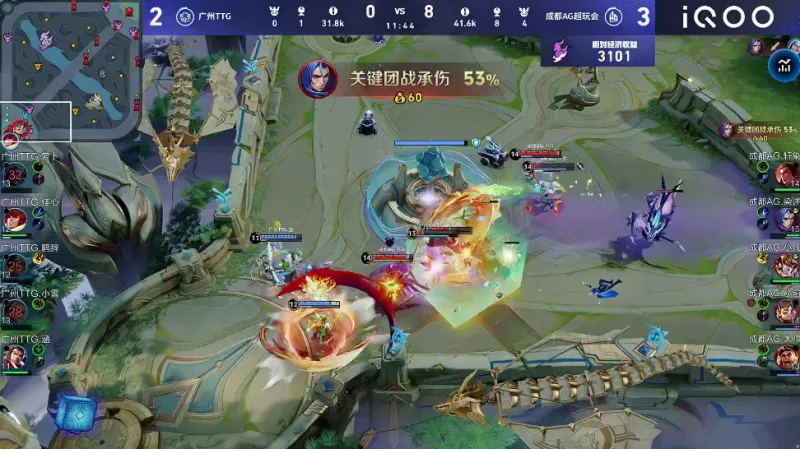 不知火舞率先发难闪现开团,后续爆发团战AG打出1换2