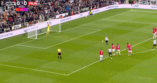 第45+5分钟,戈登左路拿球内切到禁区被B费放倒裁判判罚点球,戈登主罚点球球进,纽卡1-0曼联。